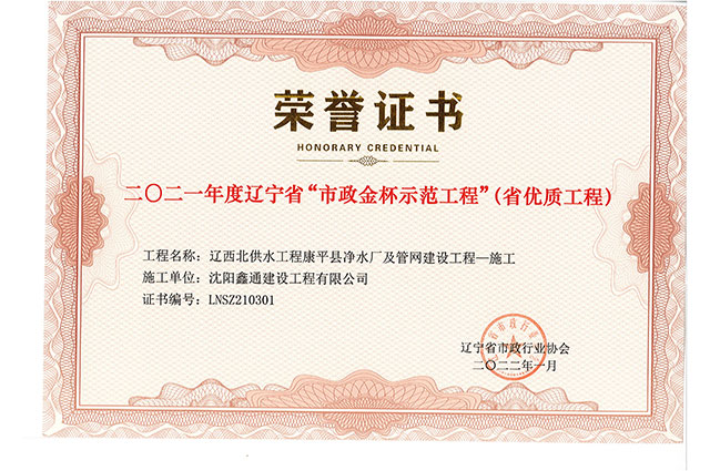 2021年度辽宁省“市政金杯示范工程”(省优质工程)